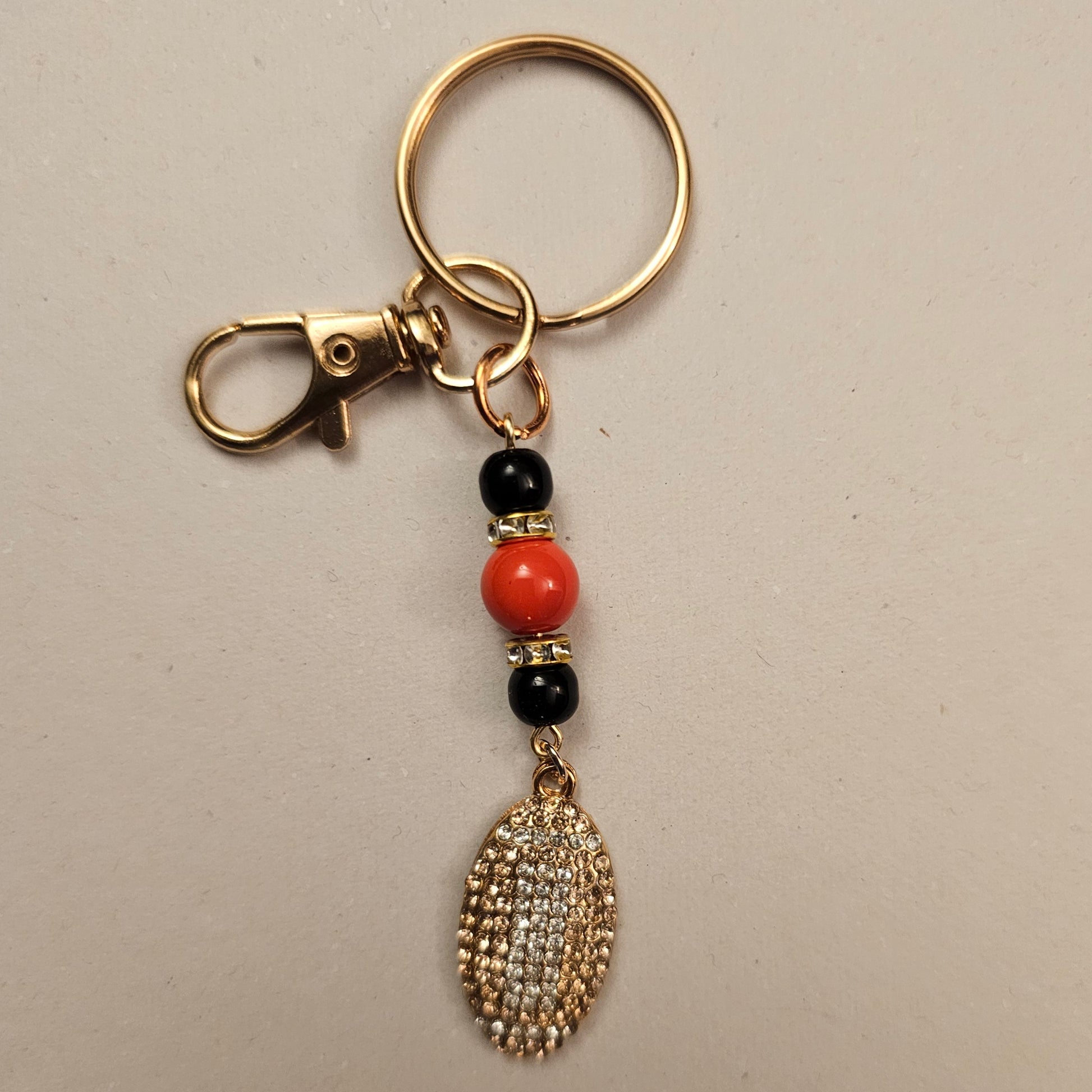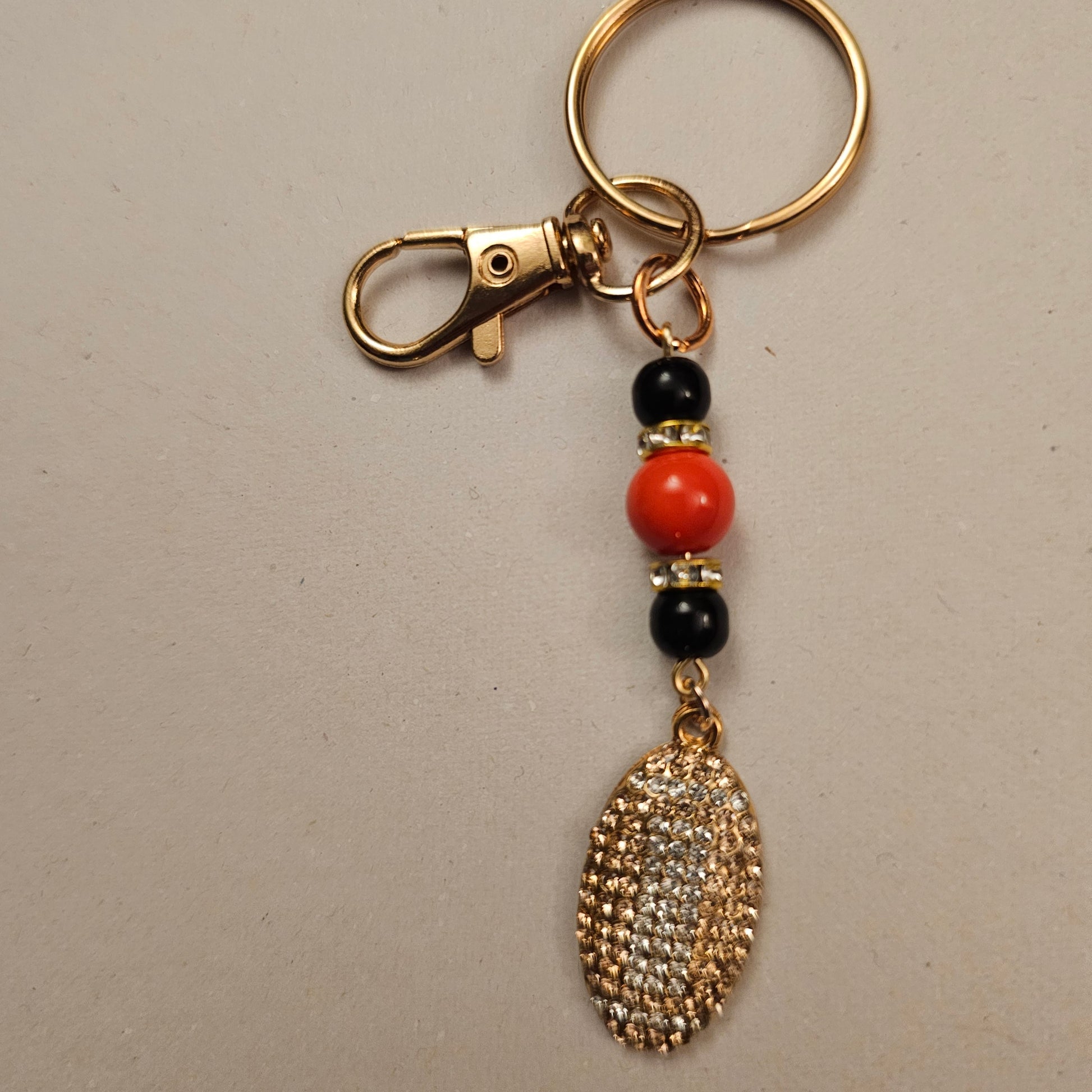 An Orange and Black jeweled Football Keychain to show your team spirit!