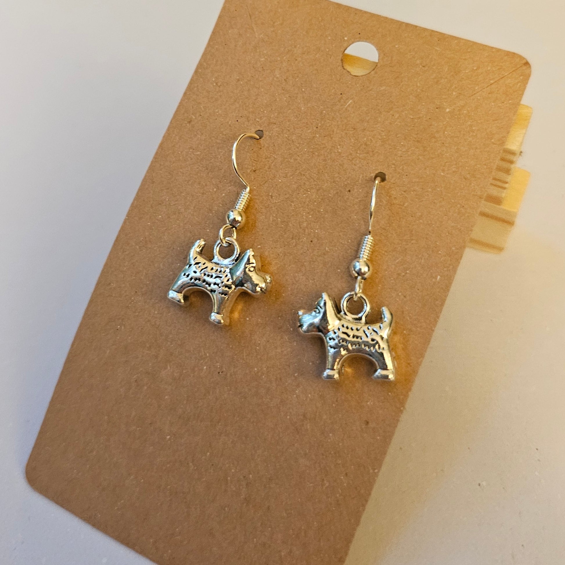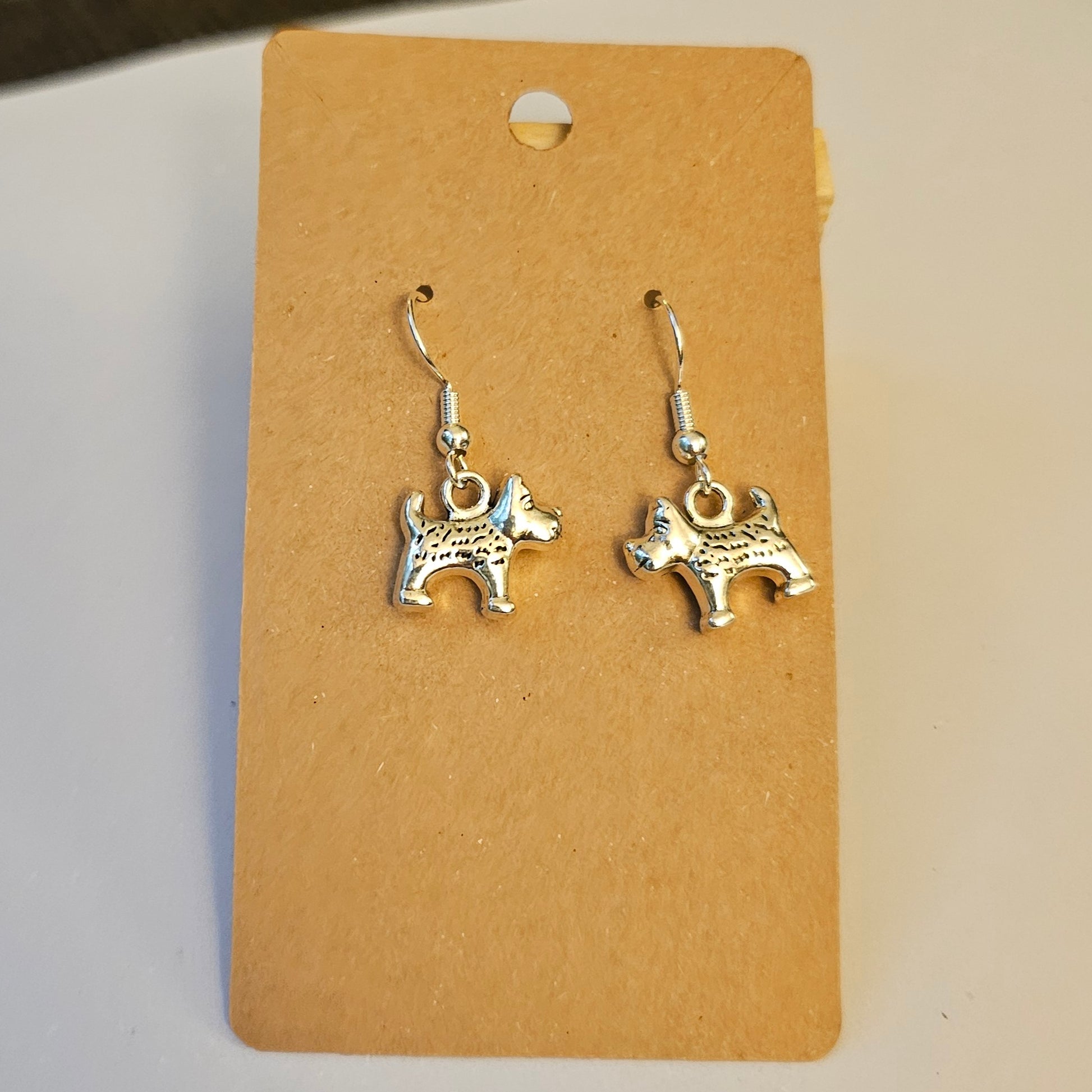 Petite earrings with little silvery dog charms.